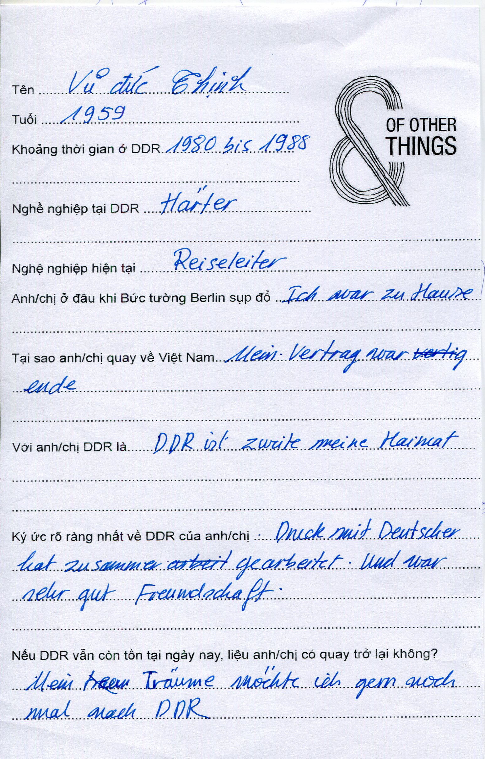 Vũ Đức Thịnh ● Occupation in the GDR: Hardener